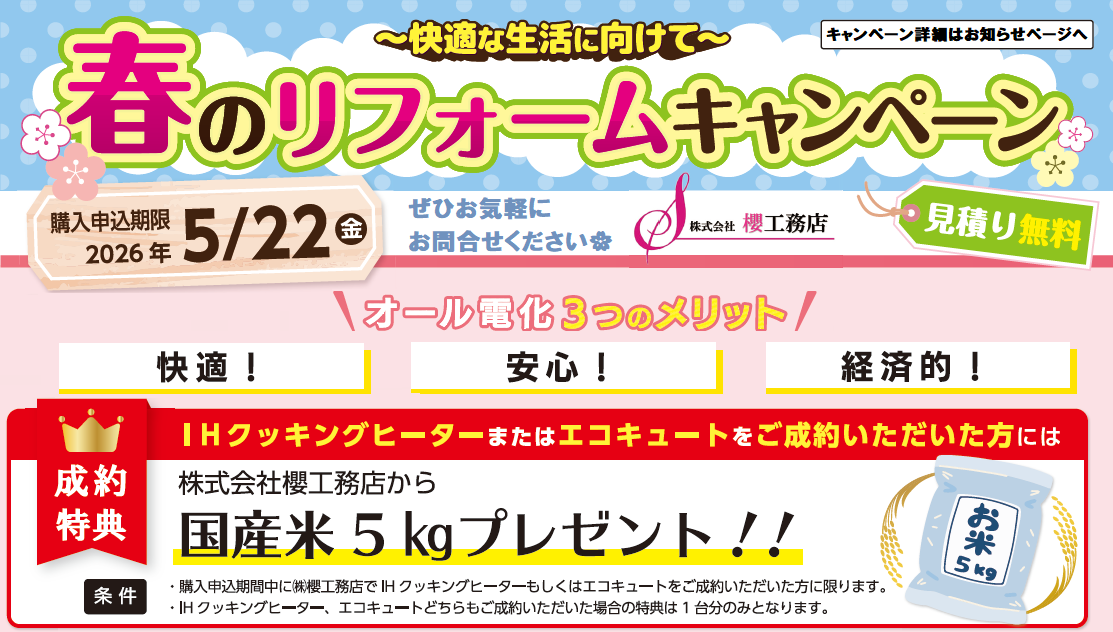 2026/3/3 【お知らせ】九州電力×櫻工務店コラボ 春のリフォームキャンペーン を更新しました♪