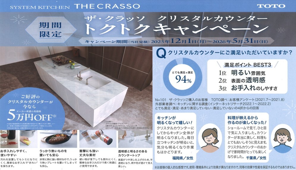 2026/2/2 【お知らせ】TOTO北九州ショールーム限定企画キッチンバス祭り を更新しました♪